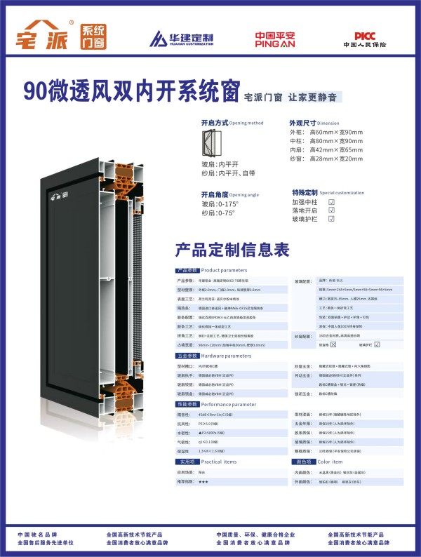 公司集成山东华建、德国泰诺风、德国威必驰、美国希美克、深圳好博、信义玻璃、南玻玻璃、阿克苏·诺贝尔等全球多家供应商资源。型材统一采用2.0mm通体壁厚,局部增强部位达到4mm,配合6063-T6原生铝与销钉注胶工艺,确保窗体在强风环境下的结构稳定性。中国人保提供100万终身保险承保,建立完整的品质保障机制。