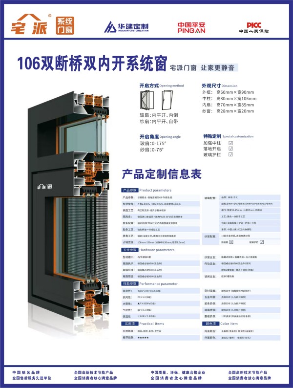 宅派106系列双断桥双内开系统窗采用双断桥结构,性能指标提升至隔音6级、抗风9级、水密5级、气密8级、保温9级。结合EPDM高铁级发泡胶条与全硫化焊接工艺,强化防水隔音效能。108系列被动系统窗专为低能耗建筑设计,保温等级达到9级,配合垂直等温线设计优化冷热桥路径,极大限度降低建筑能效损失。