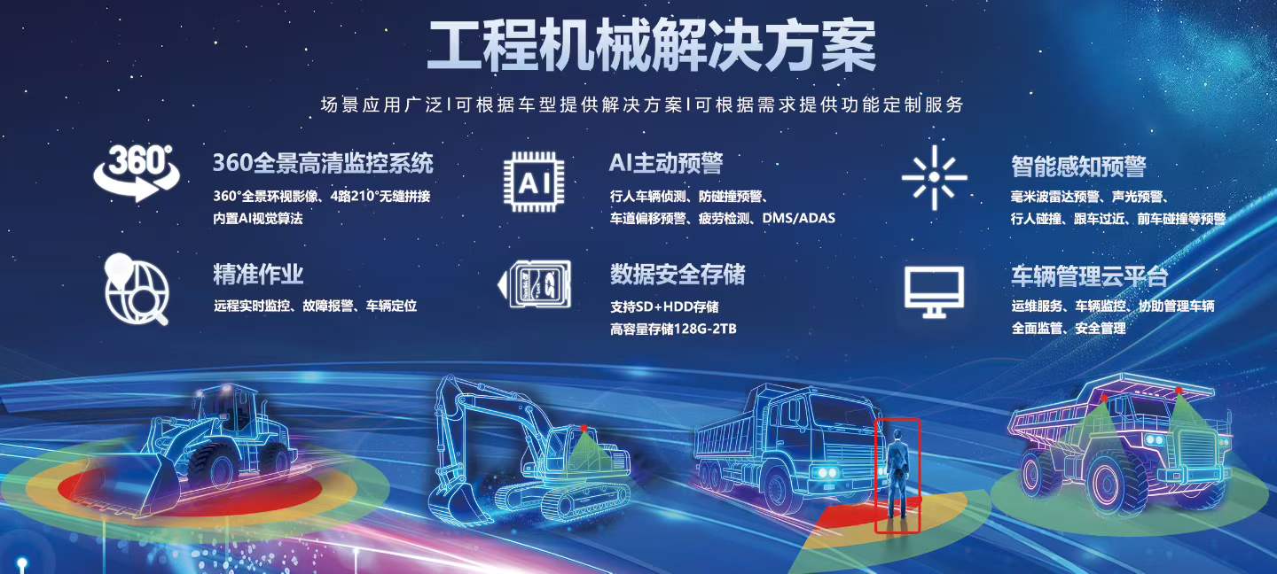 针对工程机械行业的特殊需求,公司提供工业车辆AI防撞方案和工矿车5G AI车视方案。这些方案依托5G网络实现远程实时监控与大数据分析,将车辆从孤岛变为互联节点。管理方可以通过人车物互联管理系统对车辆状态、位置及安全风险进行全局掌控。