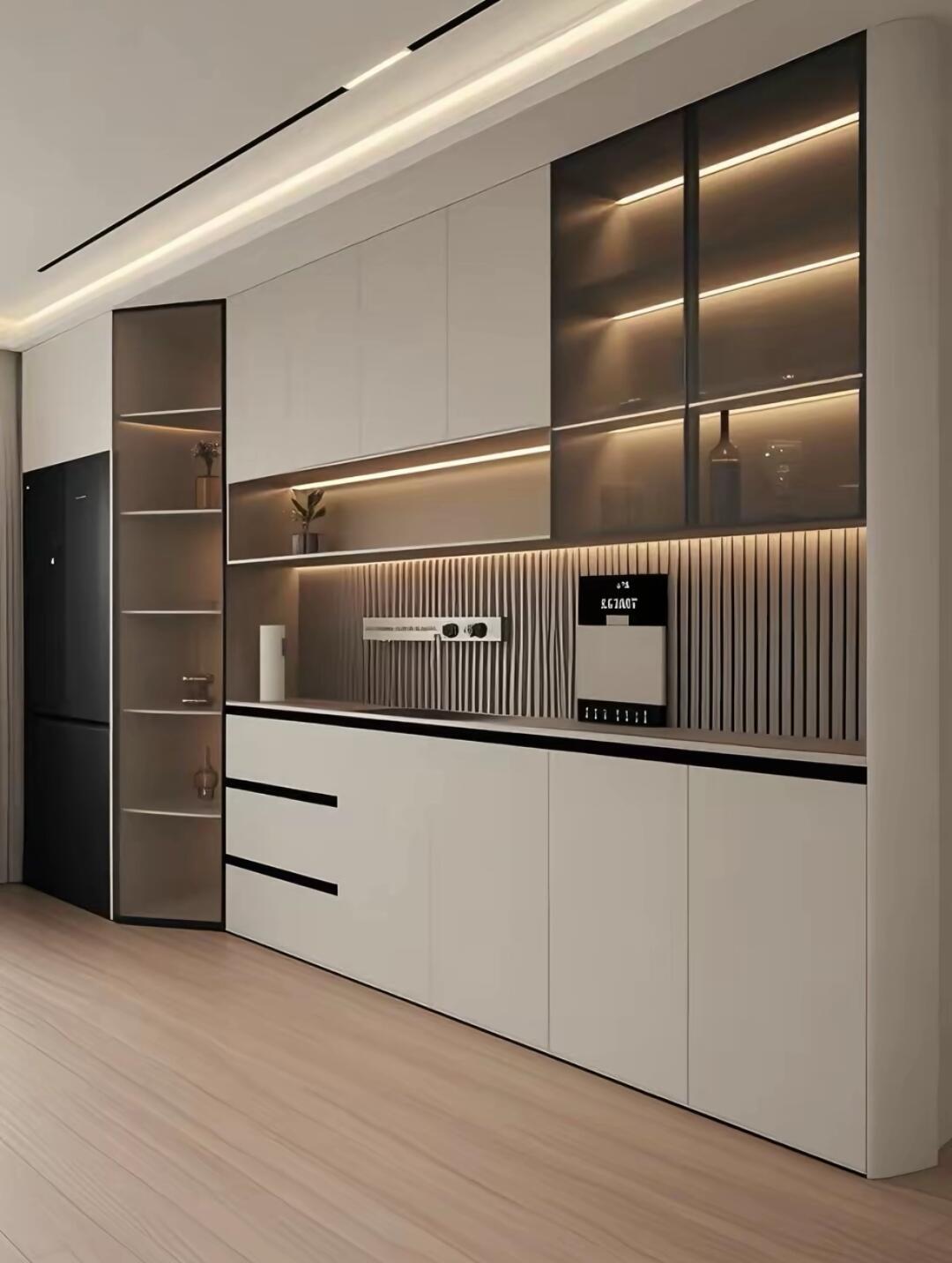 在生产环节,位于孝感市汉川市马口镇的30000㎡自营车间配备10余条全自动极东生产线,采用三合一偏心件连接工艺和背板卡槽工艺,确保异形柜体的结构稳固性。针对转角、斜顶等复杂结构,工厂通过1:1复刻异形工艺,实现圆滑过渡,消除空间生硬感。封边环节采用PUR封边与激光封边双重工艺,防潮防污性能提升,特别适配厨卫等高湿环境。